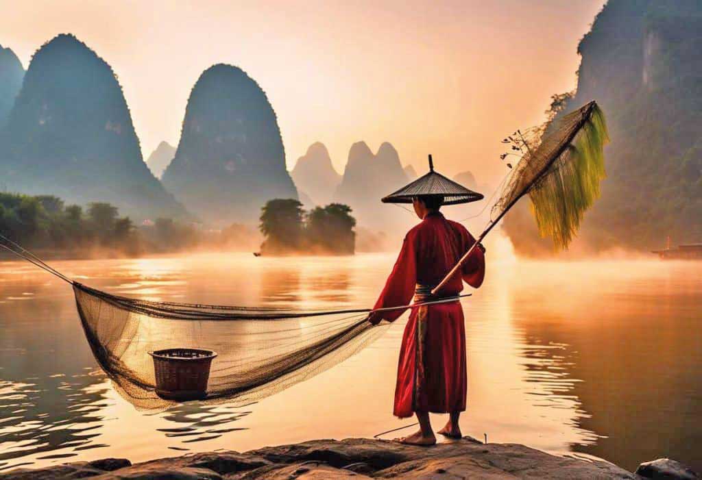 Petit-déjeuner. Le matin, croisière sur la rivière Li, au cœur de paysages emblématiques de pains de sucre, villages traditionnels et forêts de bambous. Le décor brumeux du Lijiang, immortalisé par peintres et poètes, défile au fil de l’eau. Déjeuner à bord. Arrivée à Yangshuo, charmante petite ville entourée de montagnes karstiques. Temps libre pour flâner sur le marché local. Installation à l’hôtel. Dîner au restaurant et nuit.