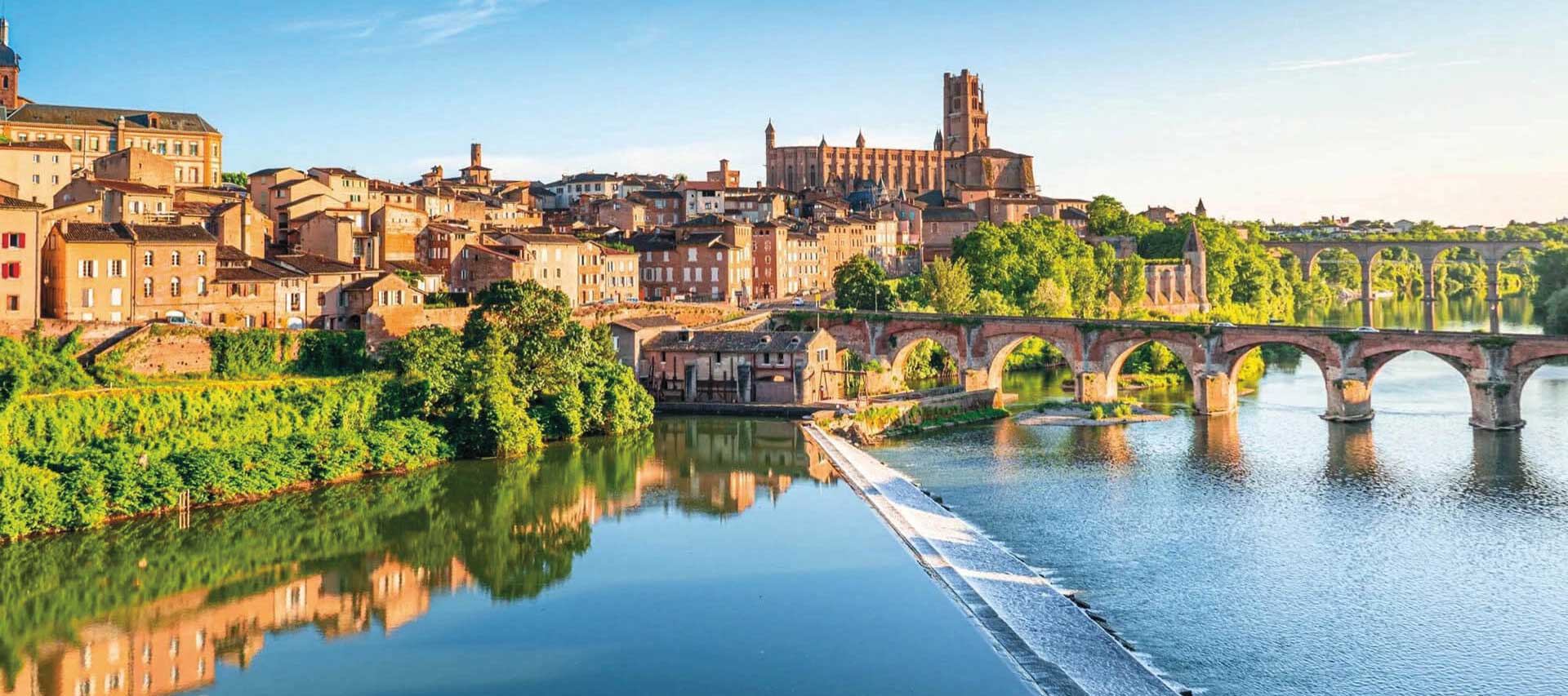 Petit-déjeuner puis départ pour Cordes sur Ciel en petit train, élu « Village préféré des Français en 2014 », cité médiévale au sommet d’une colline isolée où vous pourrez admirer l’artisanat local et ses maisons du 14e siècle qui en font le charme. Visite guidée de la cité fondée par Raymond VII, Comte de Toulouse. L’escalier qui mène à la Porte de l’Horloge est appelé « Pater Noster » en raison du nombre de ses marches équivalent à celui du nombre des mots du Pater Noster. À vous de vérifier ! Route vers Albi, déjeuner au restaurant. Albi classé au Patrimoine Mondial de l’Unesco. Visite guidée du Vieil Alby et ses tortueuses ruelles, passage devant de beaux hôtels particuliers et Maisons Typiques du style Albigeois. Visite de la Cathédrale Sainte Cécile, imposante forteresse édifiée par l’Église au 13e siècle. Elle est considérée comme la plus grande cathédrale peinte d’Europe. Arrêt dans un Domaine Viticole privé pour une dégustation de vins de Gaillac au retour. Arrivée en fin de journée, dîner et logement.